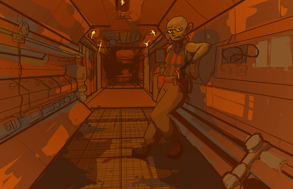 Some unused concept pages from a 2017 comic pitch, Infrastar, a science-fiction horror comic. It was an exercise in a certain scifi atmosphere found in Alien, Event Horizon, and Space Station 13.